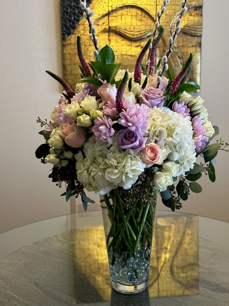 To guarantee the freshest bouquet possible, we may replace some stems in your arrangement for color or flower variety. While we always do the best to match the picture shown, sometimes different vases may be used. Any substitution made will be similar to the original design and be of equal or greater value.